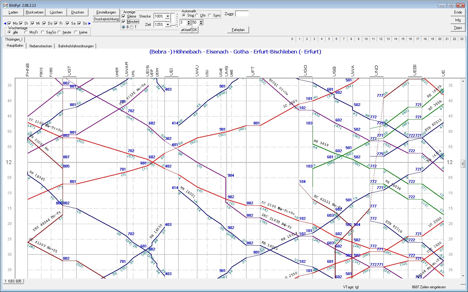 Fahrpläne, die bei ESTWsim mitgeliefert werden, grafisch und